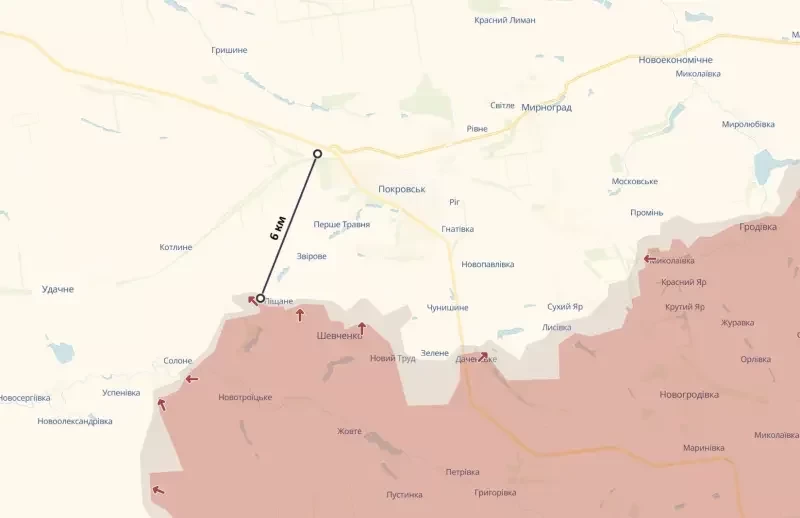 Между тем группировка российских войск «Центр» выбивают ВСУ из Песчаного к югу от Покровска, одновременно стремясь обойти его с запада. Также российские бойцы завершают штурм села Даченское. В его восточной части ВС РФ продвинулись на глубину до 750 метров, информирует "Репортёр".