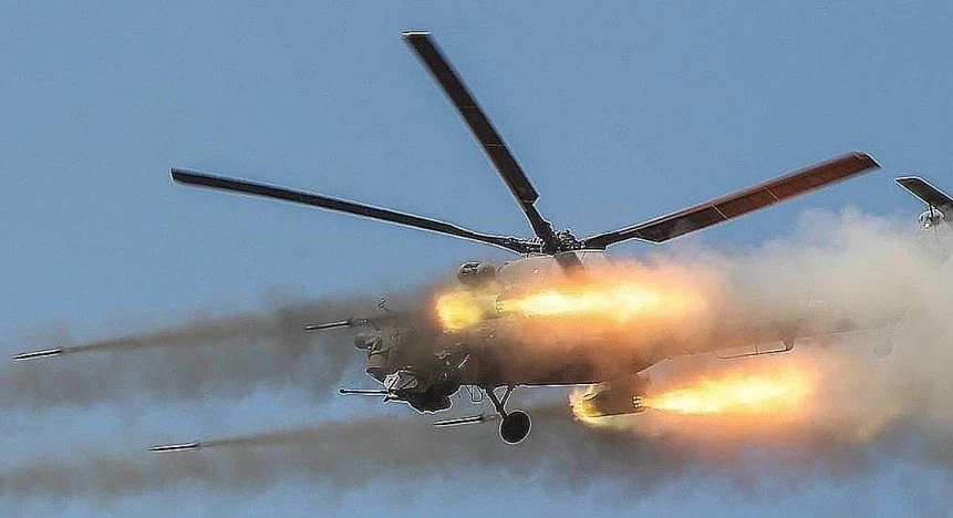 Авиационные наводчики, которые находятся на передовых позициях, подтвердили результативность атаки. После этого российский боевой вертолёт покинул зону боевых действий, снизившись до предельно низкой высоты.