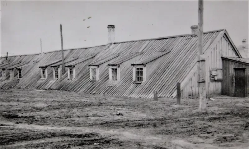 В 1944 г. для рабочих начали строить частично вкопанные в землю длинные бараки полуподвального типа на 40 семей, прозванные шалашами.
