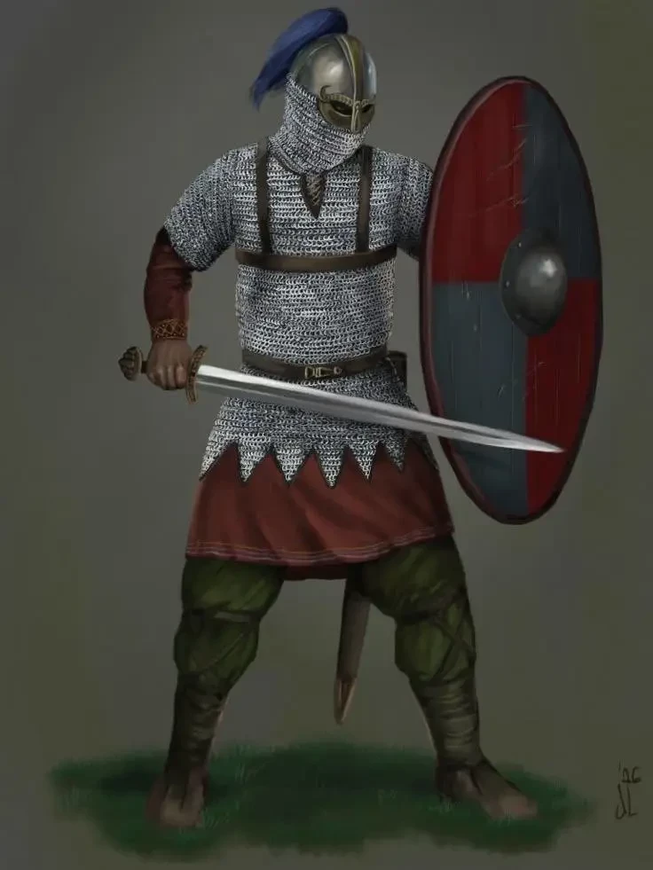 Неизвестно, как выглядел Биртнот, но так он выглядеть мог. Англосаксонский элдермен, художник Joan Francesc Oliveras Pallerols