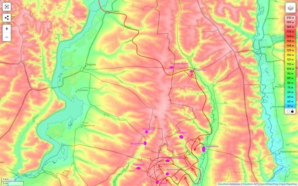 Наши части, которые несколько дней назад заняли Елизаветовку (на карте не попала, она чуть восточнее), сегодня провели успешную атаку на Миролюбовку и сейчас пытаются закрепиться на ее окраине.