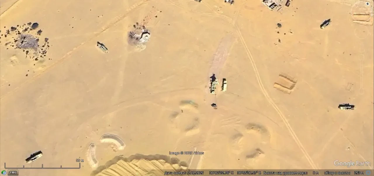 Спутниковый снимок Google Earth: позиция ЗРК С-125-2М «Печора-2М» в пустыне к югу от Каира