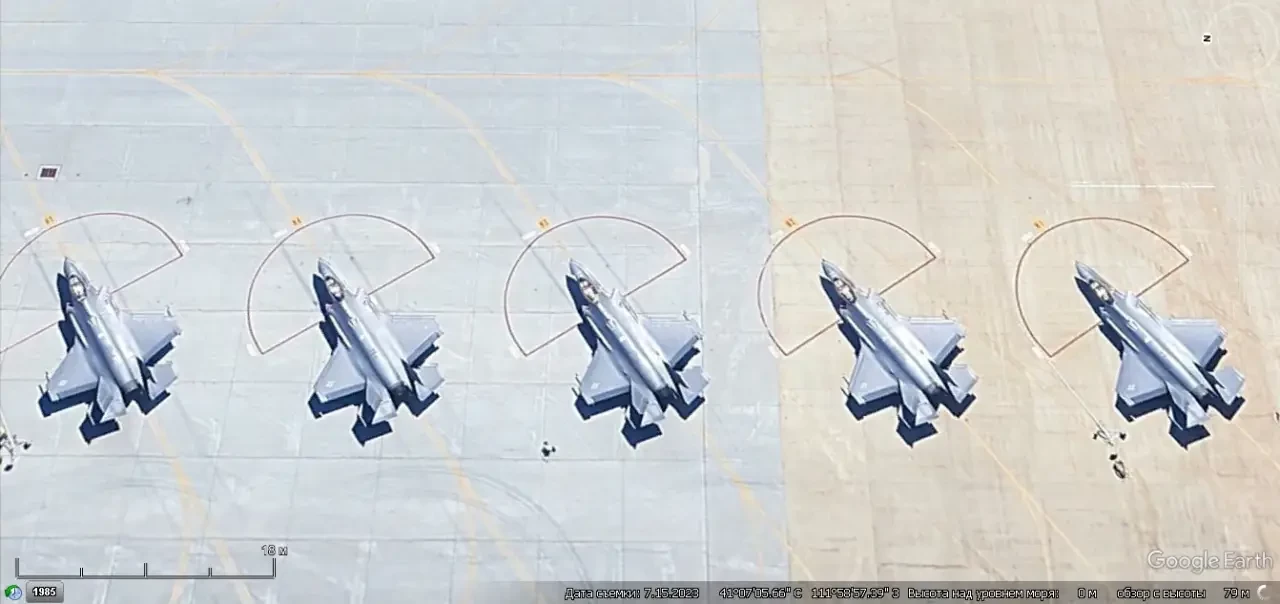 Спутниковый снимок Google Earth: истребители F-35A на авиабазе Хилл