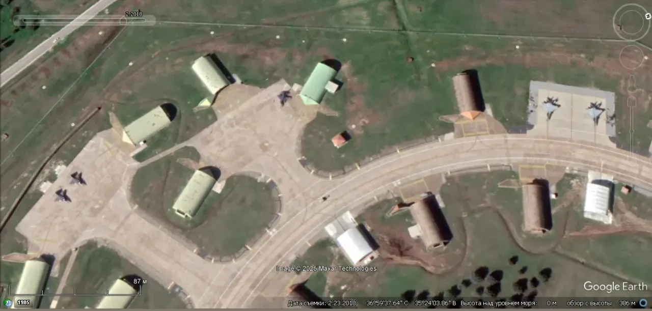 Спутниковый снимок Google Earth: самолёты Tornado на авиабазе Геди