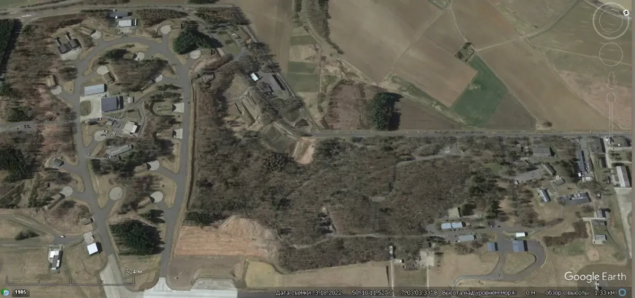 Спутниковый снимок Google Earth: подземные ядерные хранилища поросшие растительностью на авиабазе Бюхель