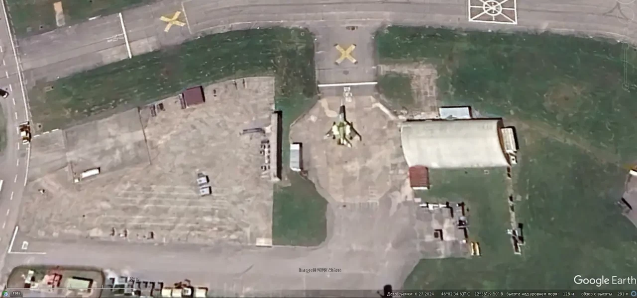 Спутниковый снимок Google Earth: истребители ВВС США F-16C/D на авиабазе Авиано