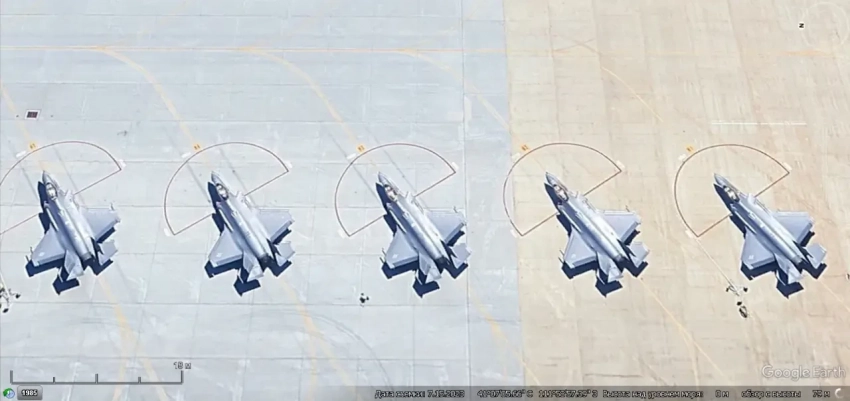Спутниковый снимок Google Earth: истребители-бомбардировщики F-35A рядом с укрытиями на авиабазе Волкель