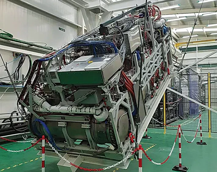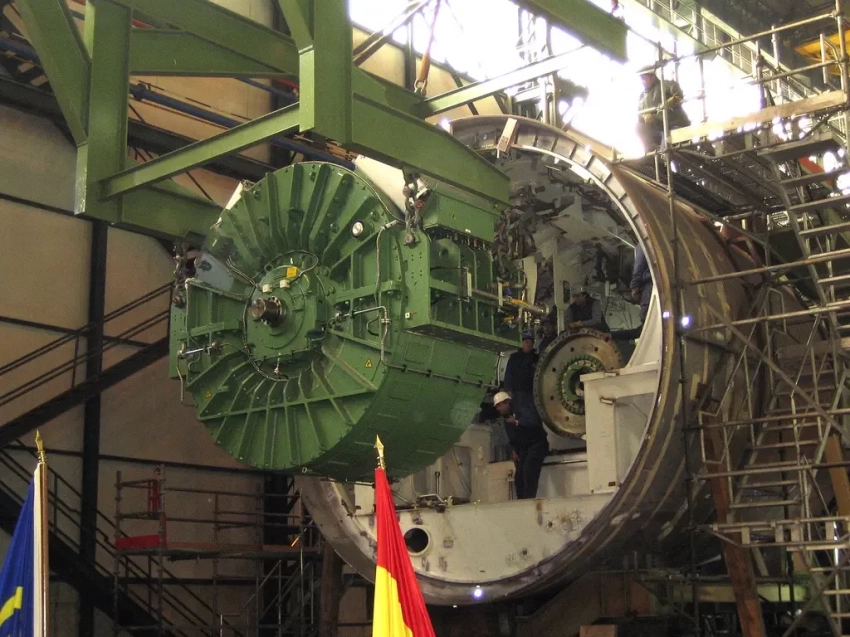 • расположенный в первом отсеке прочного корпуса синхронный гребной электродвигатель на постоянных магнитах мощностью 3500 кВт производства испанской фирмы Cantarey Reinosa (Grupo Gamesa);