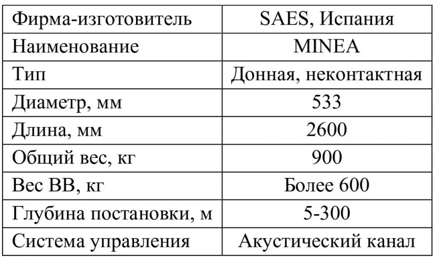 Основные ТТХ минного вооружения