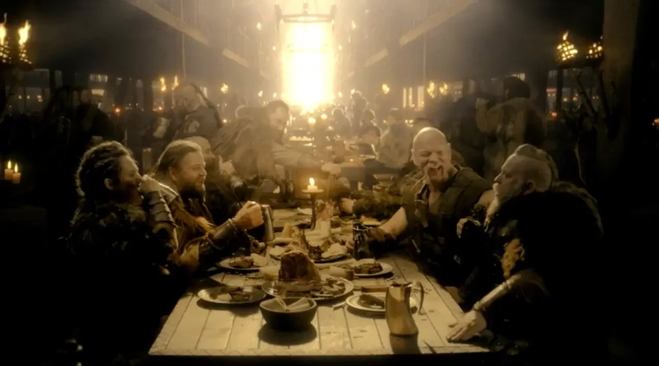 В фильмах изображается пир викингов, как безумная вакханалия. Фильм «Корабли викингов». 1963.