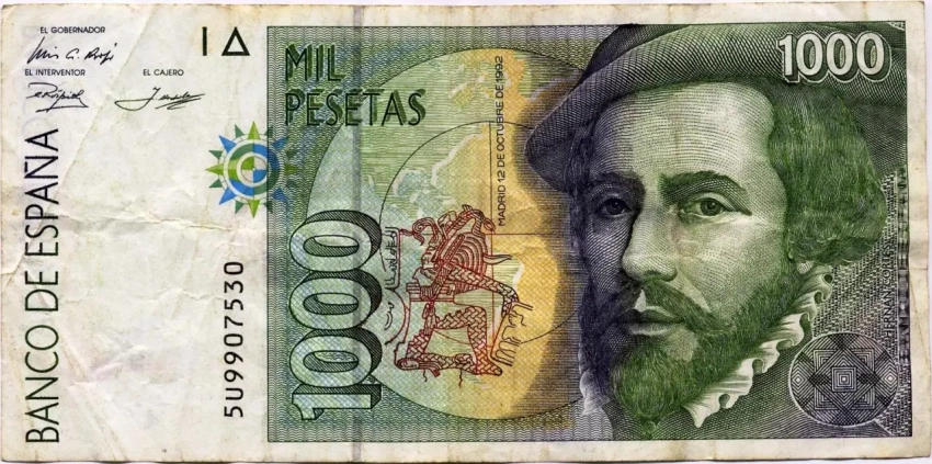 Испанская банкнота в 1000 песет от 1992 года - с портретом Кортеса: