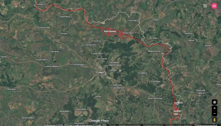 Аналитик отмечает, что совокупность этих действий ведет к опасной для ВСУ конфигурации фронта. Продолжение движения российских войск позволит начать эффективную блокаду города Сумы с использованием дронов, перерезая логистические артерии с разных направлений.