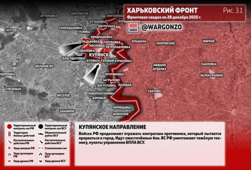Главные новости » Эксклюзив » В Купянске не смолкают ожесточённые бои: свежие данные о ситуации в городе на 28 декабря 2025