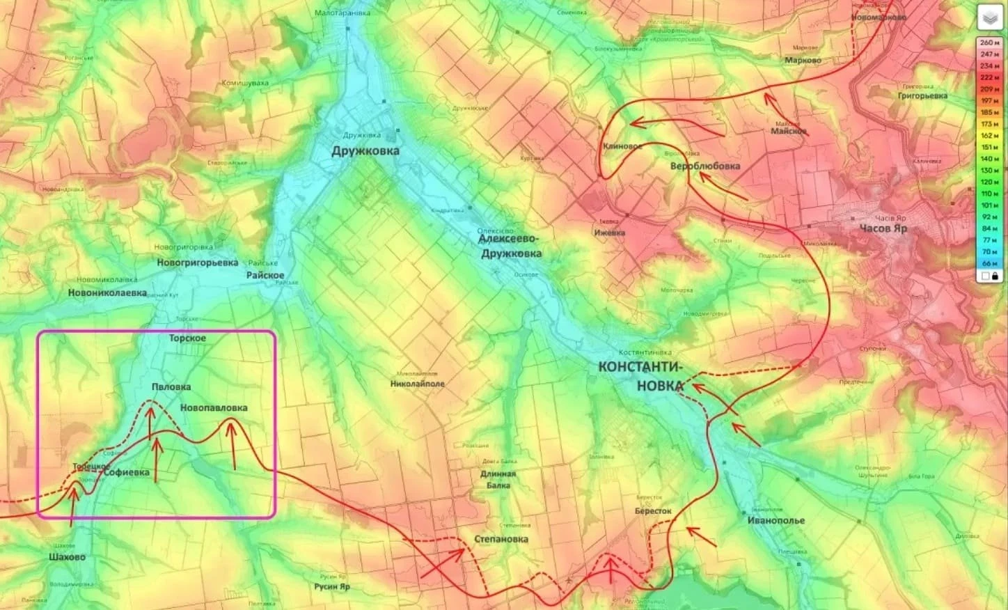 Блогер сообщил также о выходе подразделений РФ к окраинам сел Павловка и Новопавлока, находящихся в нескольких километрах от Торецкого.