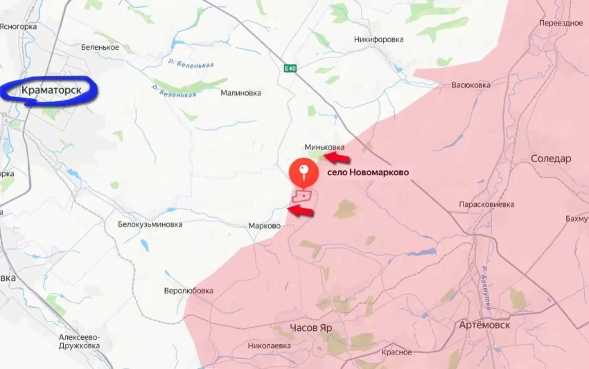 Российские войска продвигаются к северу от Часова Яра. С начала суток под контроль Вооружённых сил России перешло село Новомарковка и до 11 квадратных километров окрестных территорий.