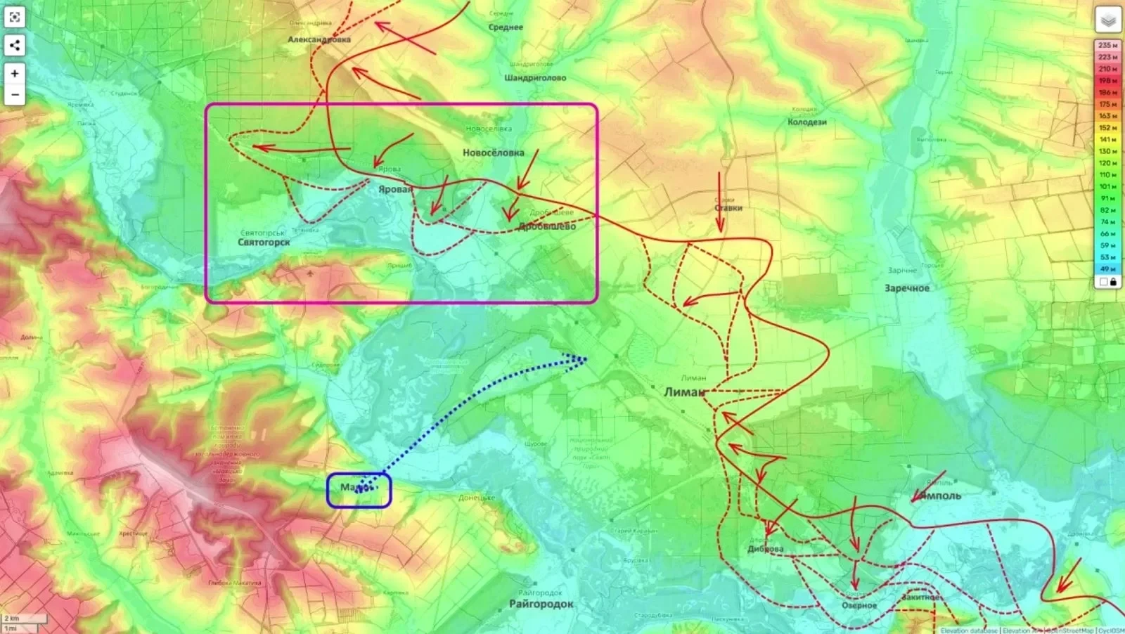 В принципе, «лобовое» освобождение Красного Лимана в данном контексте не является первостепенной задачей. Напротив, фланговый охват города, что стало уже своего рода традицией для ВС РФ при взятии хорошо укрепленных н. п. противника, вынуждает командование ВСУ бросать на этот участок фронта дополнительные силы, в том числе снимая их с других направлений.
