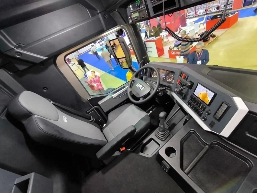 Технически БАЗ собран из следующих компонентов. Мотор ЯМЗ-653 и 9-ступенчатая КПП из Ярославля, раздаточная коробка из Набережных Челнов (ЗМТ КОМ), 12-тонные мосты собственной разработки, колеса с централизованной системой подкачки, вся электроника от московской Итэлмы, а кабина каркасно-панельная. Кабина заслуживает отдельного рассмотрения. Так как БАЗы будут делать мелкой серией (планы на 2026 год – около 600 машин), то налаживать штамповое производство не имело смысла. Объем финансирования и без этого превысил 10 млрд рублей, и проект потребует еще около 7 млрд до 2027 года. Каркасная кабина построена на стальном каркасе, снаружи покрыта стеклопластиком, внутри АБС-пластиком, а между ними утеплитель и шумоизоляция.