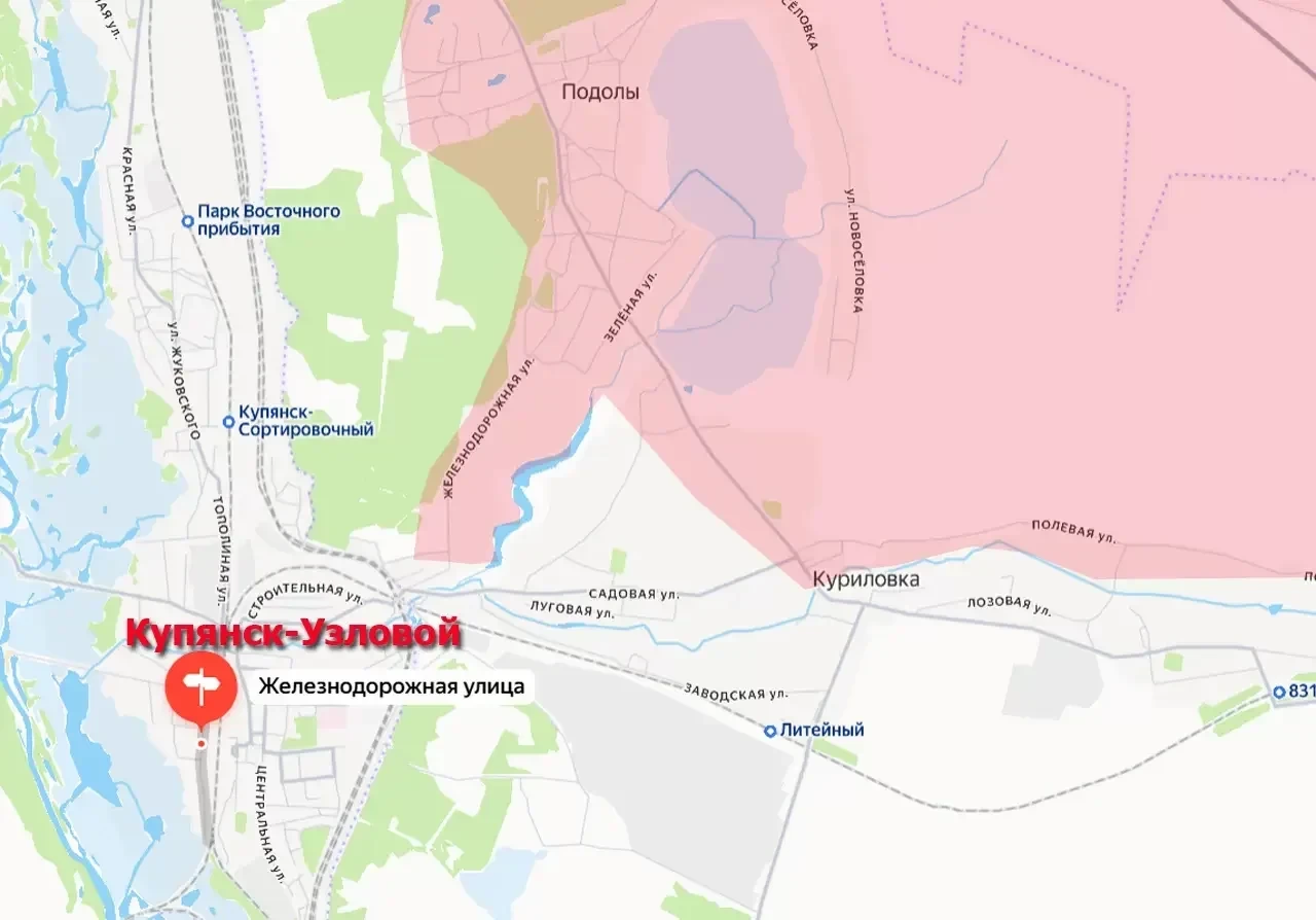 На фоне этих заявлений появляются сведения о продвижении Вооружённых сил России на левобережье Оскола. Сообщается о переходе под контроль российских подразделений улицы Железнодорожной в пригороде Купянска - населённом пункте Купянск-Узловой. Продвижение на глубину около 3,5 километра зафиксировано также в районе водохранилища на реке Лозоватка, отмечает "Военное обозрение".