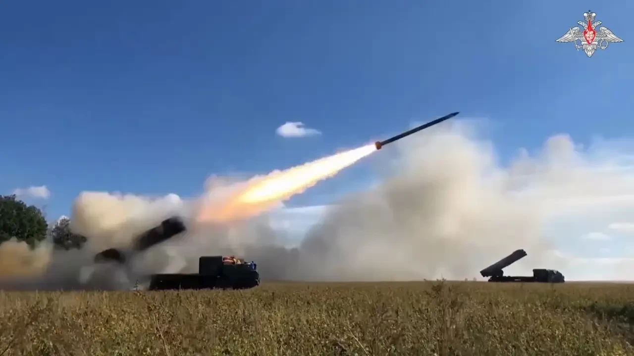 Боевая работа РСЗО «Торнадо-С» с 300-мм ракетами. Фото Минобороны РФ