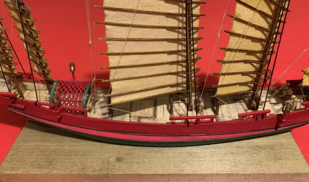 Модель китайской джонки из набора деревянных деталей китайского производства. Фотография автора