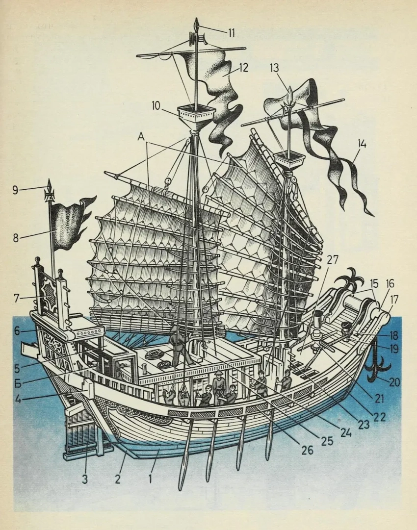 Рисунок джонки из книги автора «Для тех, кто любит мастерить». М., «Просвещение», 1990
