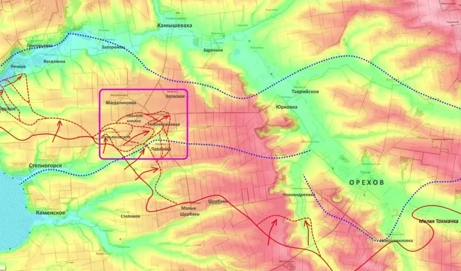 Ключевым фактором остаётся контроль над дугой населённых пунктов - Павловка, Лукьяновское, Магдалиновка, Новобойковское и Запасное. Часть этих сёл уже перешла под контроль российских войск. Потеря оставшихся опорных пунктов, как отмечает Подоляка, вынудит украинские подразделения отходить к линии реки Конка, которая является естественным оборонительным рубежом. В этом случае бои могут сместиться к окраинам Камышевахи и Заречного.
