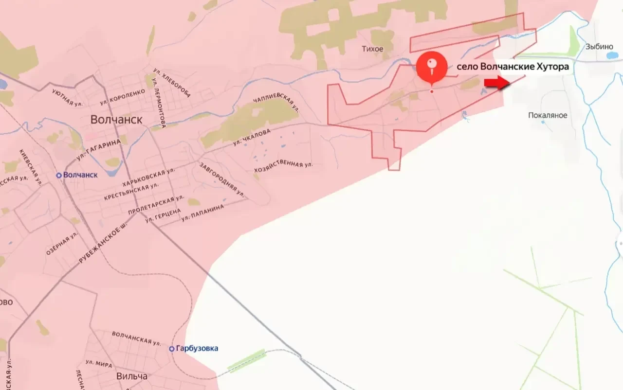 Поступают сообщения о том, что подразделения российской армии выбили противника из большей части населённого пункта Волчанские Хутора. Это восточный пригород ранее освобождённого Волчанска.