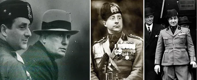 Первый секретарь (в 1931-1939 годах) Национальной фашистской партии и начальник штаба фашистской милиции («чернорубашечники») Акилле Стараче (Achille Starace/1889-1945). Это один из первых итальянских фашистов и верный сторонник Муссолини. В 1935 году он взял отпуск, чтобы в звании полковника участвовать в итальянском вторжении в Эфиопию. Являлся главой Олимпийского комитета Италии. 29 апреля 1945 года в Милане он был схвачен итальянскими партизанами-антифашистами и убит, а его тело было выставлено на всеобщее обозрение рядом с телом Муссолини и других фашистских лидеров