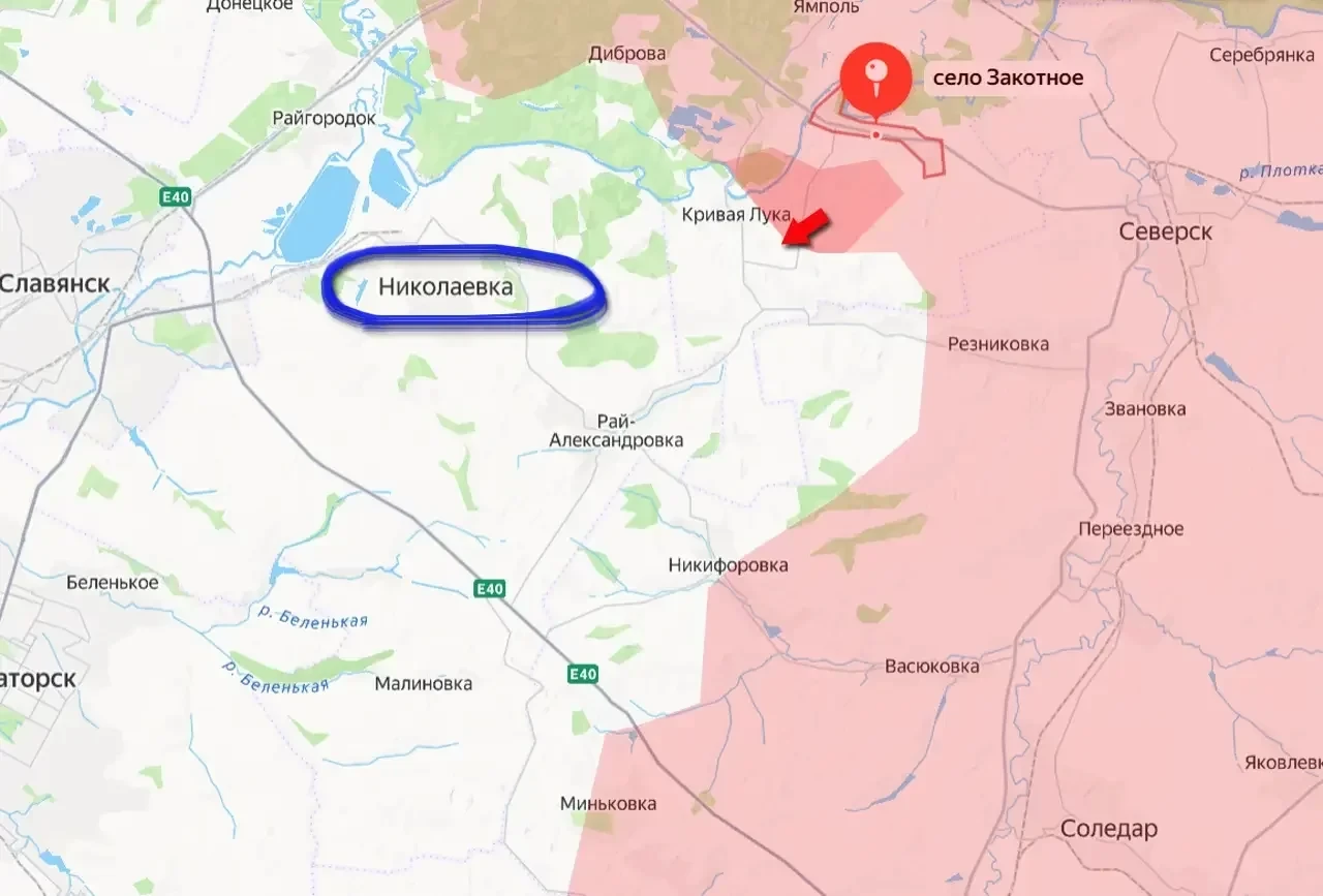 От передовых позиций Вооружённых сил России до города Николаевка, являющегося восточной частью указанной агломерации, остаётся порядка 10 км. Это уже даёт возможность взять как минимум под частичный огневой контроль маршруты снабжения противника в районе упомянутой Николаевки, лишая украинские войска возможности осуществлять беспрепятственный военный трафик на данном направлении.