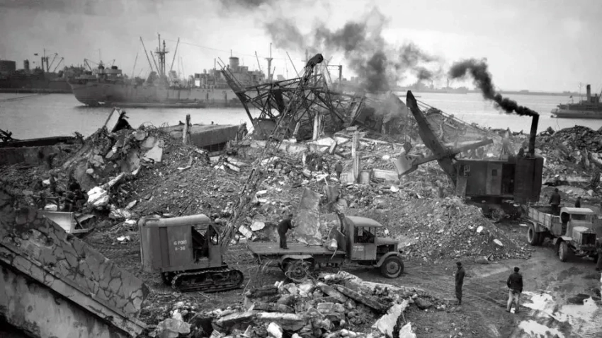 Разрушения в порту Шербура