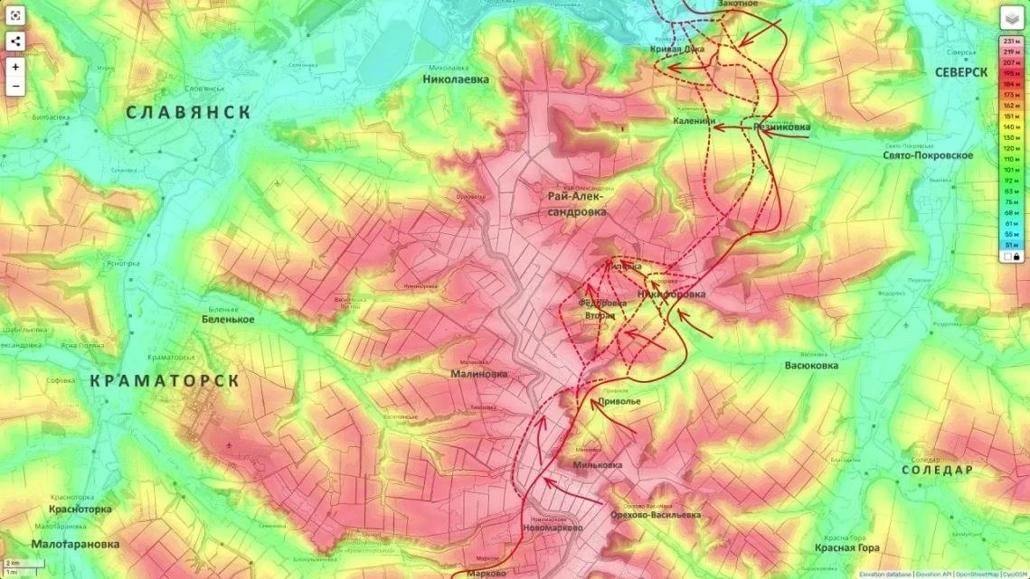С военной точки зрения этот участок действительно приобретает всё большее значение, поскольку продвижение севернее Святогорска способно осложнить положение украинской стороны сразу на нескольких смежных направлениях.
