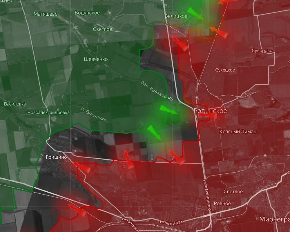 Севернее, в районах Белицкого и Нового Донбасса, фиксируются ожесточенные встречные столкновения - враг пытается контратаковать, чтобы остановить наше продвижение к логистическим узлам.