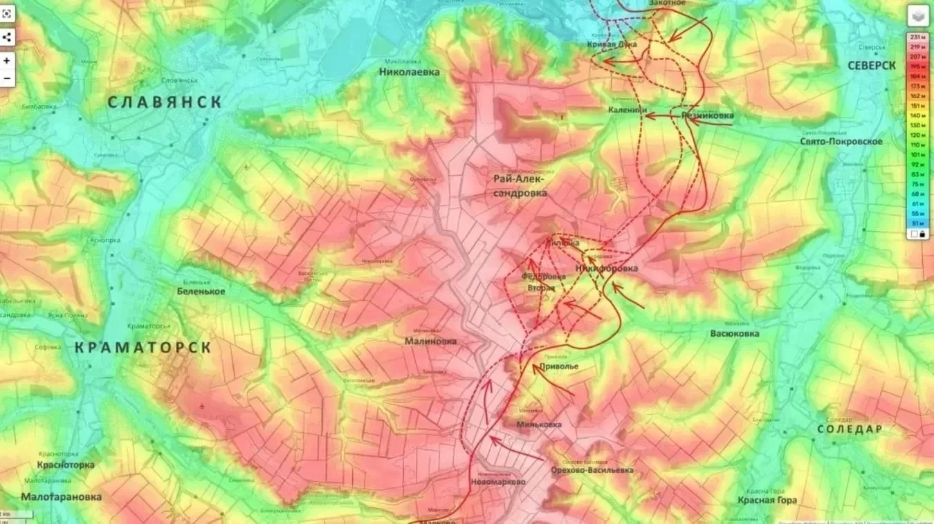 Если в районе Часового Яра продвижению способствовали лесные массивы, то здесь ландшафт представлен преимущественно открытыми пространствами и немногочисленными лесополосами. Сама агломерация Краматорск - Славянск - Дружковка за годы конфликта превращена в единый укрепленный район, который украинское командование в спешном порядке продолжает насыщать резервами.
