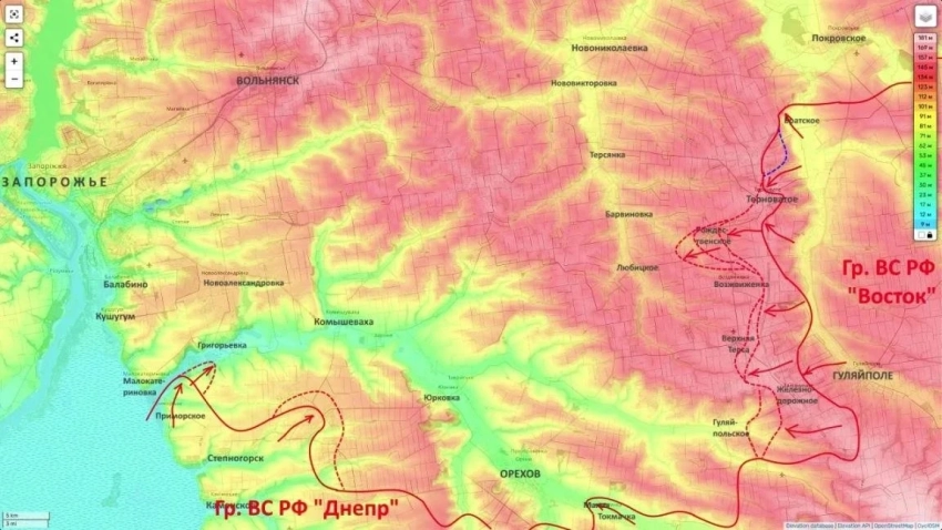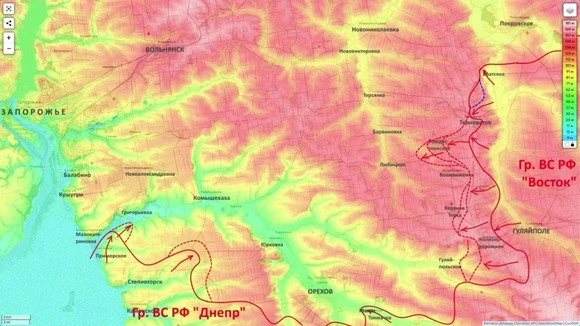 «Наши подразделения, опираясь на район южнее Терноватого, пытаются взять в клещи группировку противника в районе Воздвижевки и Верхней Терсы, чтобы далее выйти на Любицкое», - рассказал блогер. Он назвал Любицкое точкой для охвата группировки ВСУ в городе Орехов с севера.