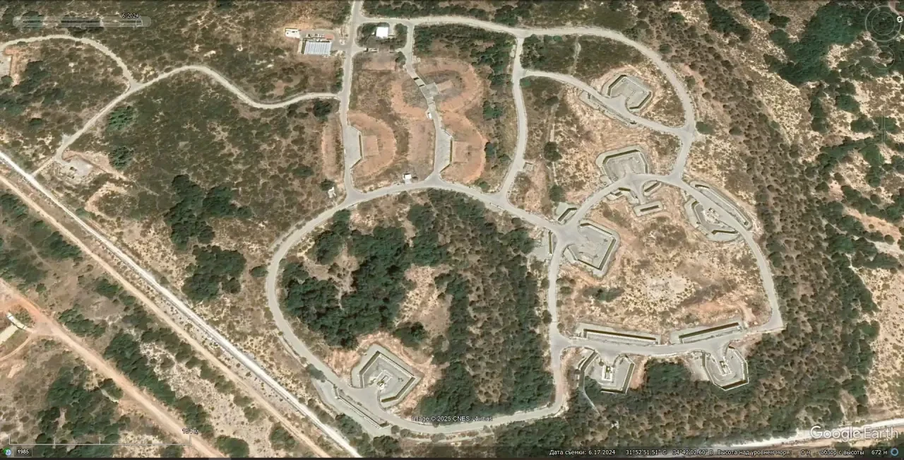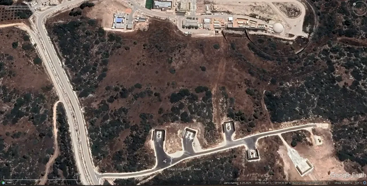 Cпутниковый cнимoк Googlе Еаrth: позиция системы ПРО Arrow-2 и РЛС EL/M-2080 Green Pine на военном объекте в окрестностях поселения Таль-Шахар. Снимок сделан в июне 2024 года