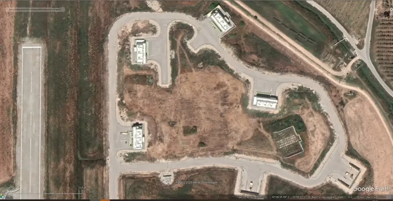 Cпутниковый cнимoк Googlе Еаrth: РЛС EL/M-2080S Super Green Pine на авиабазе Эйн-Шемер. Снимок сделан в марте 2025 года