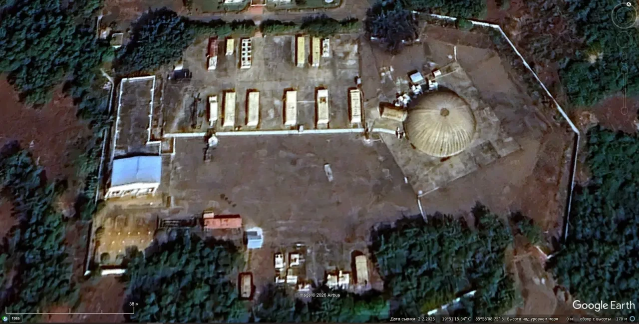 Cпутниковый cнимoк Googlе Еаrth: элементы системы Iron Dome на территории Военного училища противовоздушной обороны Бисла. Снимок сделан в ноябре 2024 года