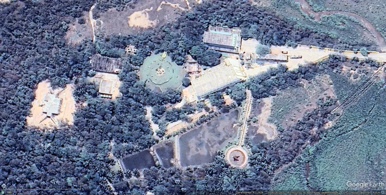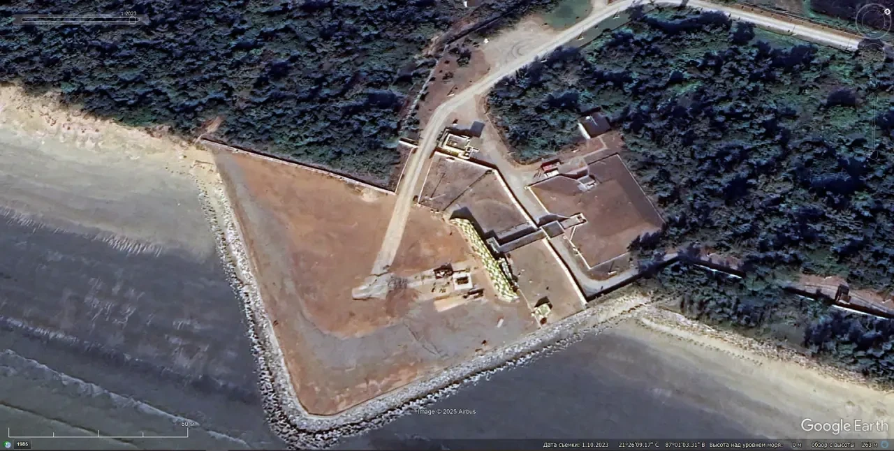 Cпутниковый cнимoк Googlе Еаrth: сооружения испытательного ракетного полигона на острове Абдул Калам. Снимок сделан в апреле 2024 года