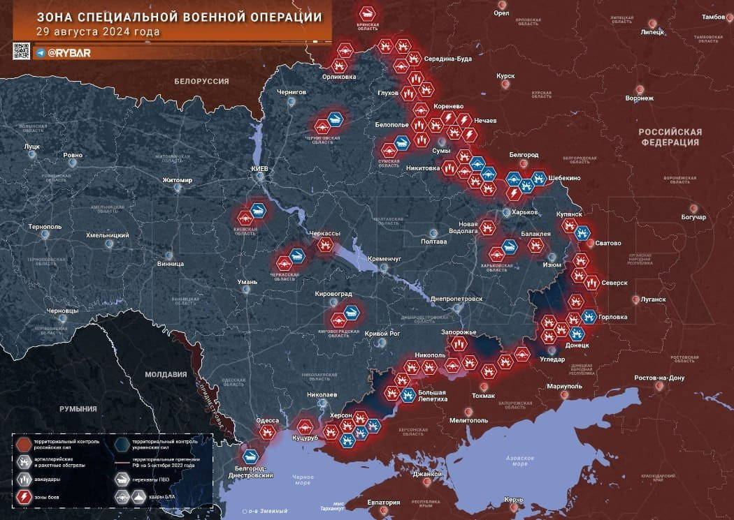 Новая карта боевых действий в зоне СВО на Украине от 30.08.2024