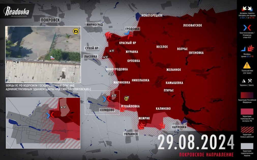 На Покровском направлении также продолжается наступление российских войск, взят террикон и шахта Новогродовская, что подтверждает контроль над Новогродовкой, идет штурм Селидово, и, по некоторым данным, Украинска.