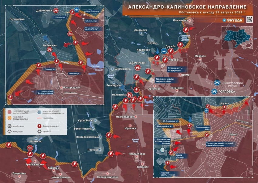 На Александро-Калиновском направлении практически полностью освобождена Дружба, идут бои на окраинах Дзержинской администрации и востоке самого Дзержинска, сообщает Telegram-канал "Рыбарь".