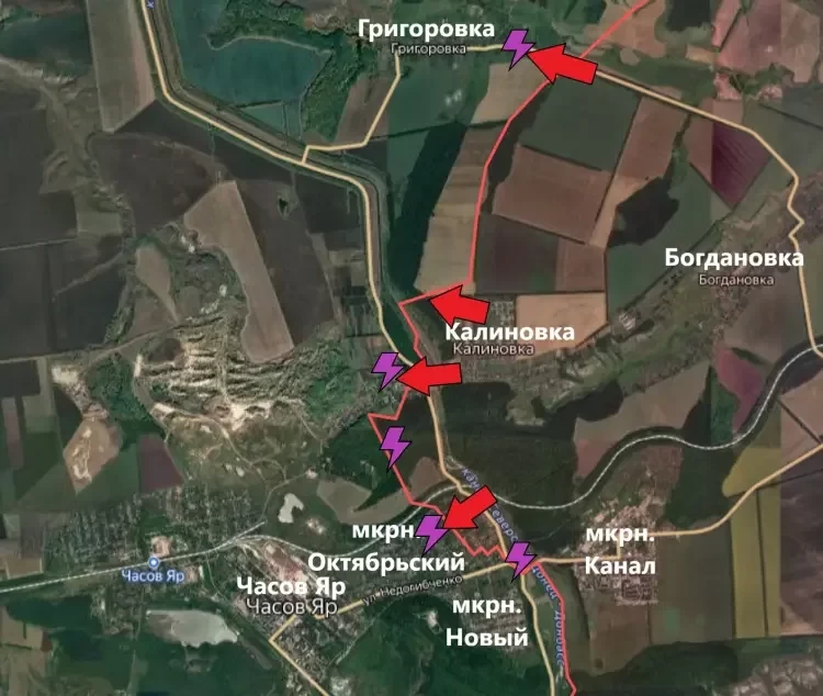 На Константиновском направлении продолжаются ожесточённые бои в восточной части Григоровки, в западной части Калиновки, а также на востоке микрорайона Канала в Часов Яре.