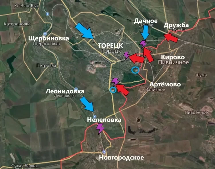 На Торецком направлении подразделения ВС РФ начали постепенно продвигаться от Дружбы в сторону Дачного, поддерживая отряды, продвигающиеся вдоль железной дороги.