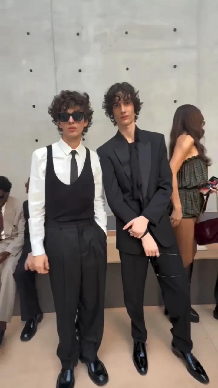 Марк Эйдельштейн посетил показ мужской коллекции Saint Laurent в Париже. Перед фотографами завсегдатай модных мероприятий позировал в наряде от бренда: на нём была белая рубашка и чёрный костюм, состоящий из трикотажного жилета и классических брюк. Образ Марк дополнил галстуком в тон и солнцезащитными очками.