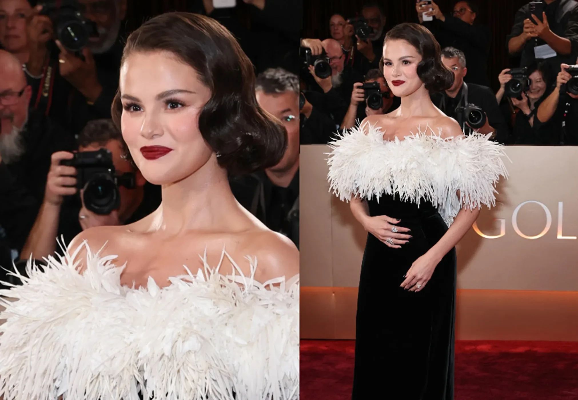 При этом 33-летняя Селена Гомес спровоцировала слух о том, что ждёт ребёнка. Поводом для разговоров стало фото певицы с красной дорожки, на котором она держится за живот.