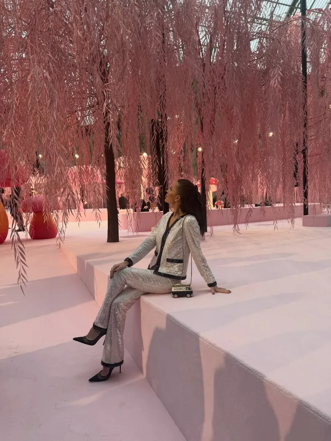 Жена владельца издательства "Эксмо" Олега Новикова и бывшая участница реалити-шоу "Дом 2" Инесса Шевчук решила покорить Неделю моды в этом сезоне. Она сходила на шоу Schiaparelli и Yanina, а также попала на Chanel и Zuhair Murad. Ксения Чилингарова тоже была среди гостей на показе Chanel, куда она пришла в зелёном парике.