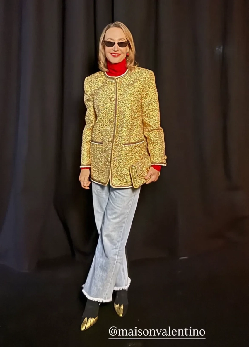 Рената Литвинова в чёрном кейпе и с макияжем в золотых тонах посетила шоу Schiaparelli, где встретилась со стилисткой Витой Клац. Снежанна Георгиева с дочерью Софьей посетили показ Valentino, где также были Оксана Бондаренко, Мария Богданович и многочисленные звёзды.