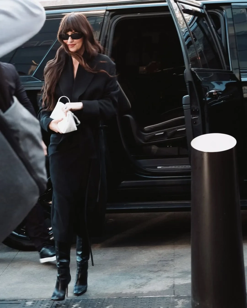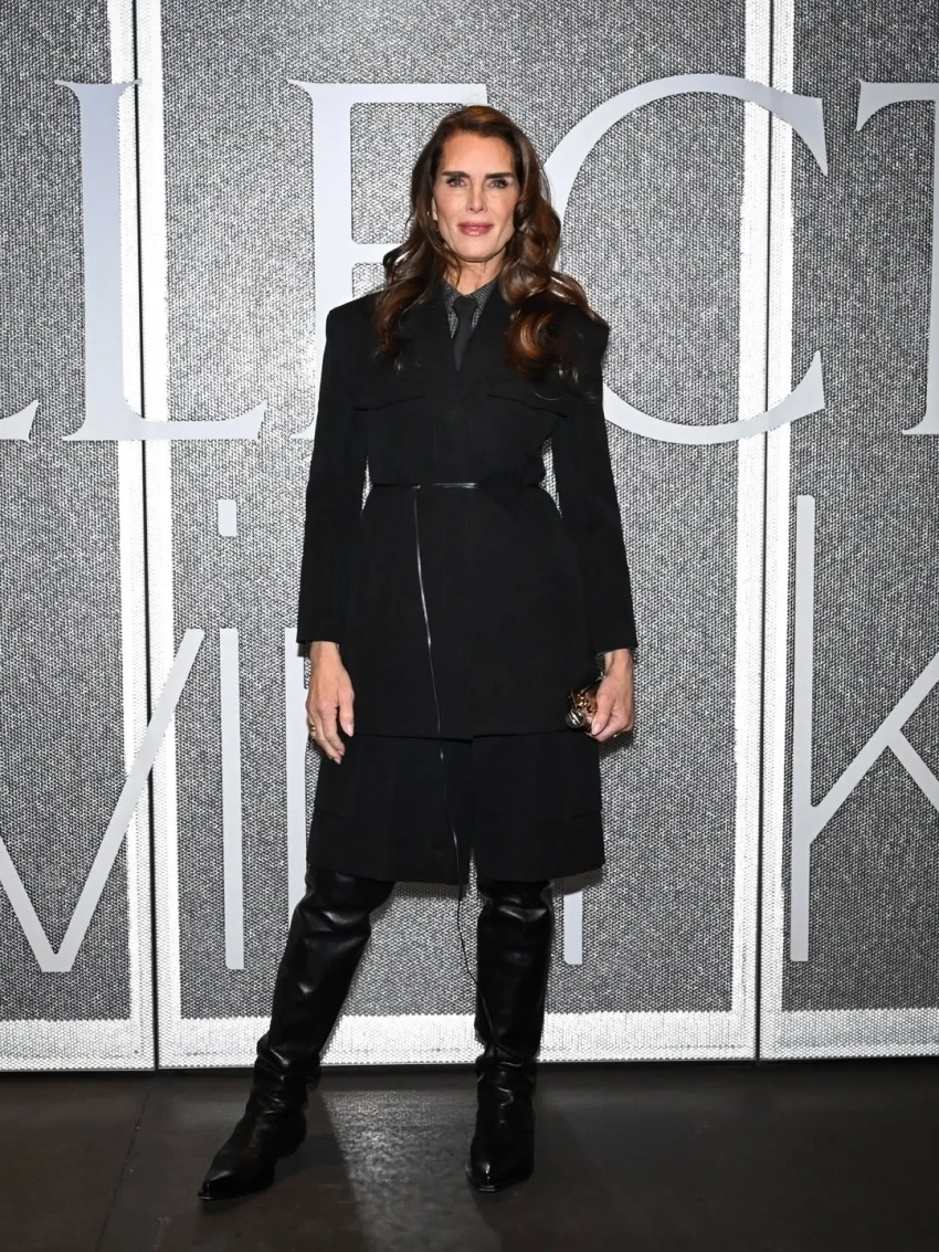 Гости шоу пришли в образах в чёрном цвете. 60-летняя Брук Шилдс надела жакет с галстуком и кожаные ботфорты, а Дакота Джонсон примерила похожий образ — длинное пальто и сапоги на каблуках. 36-летняя Лили Коллинз надела пальто с розовым топом из бисера, а 42-летняя Алекса Чанг примерила наряд с открытой спиной, дополнив его косынкой как у Грейс Гаммер.