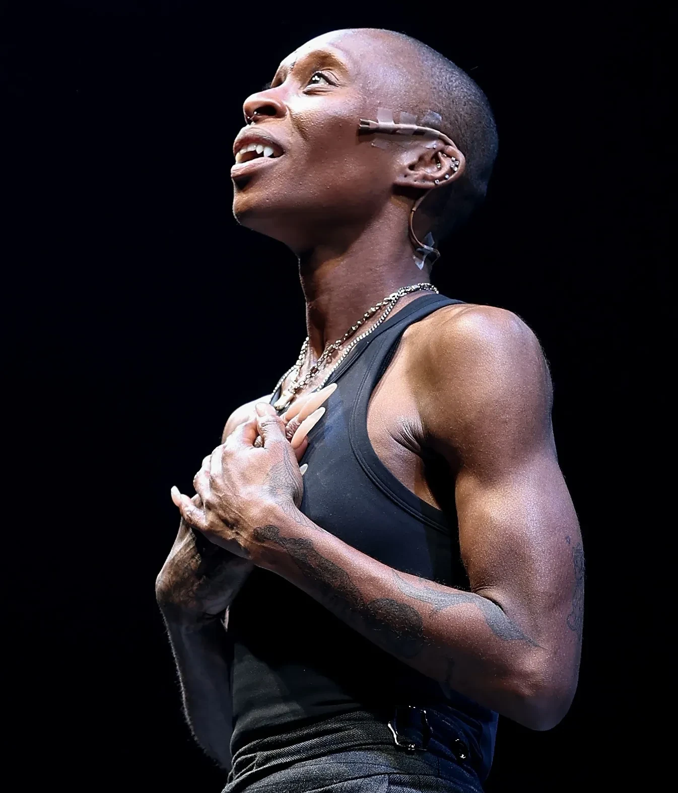 Синтия Эриво в образе "Дракулы"Ранее Брук Шилдс, Дакота Джонсон, Лили Коллинз и дочь Мартина Скорсезе посетили показ Calvin Klein в Нью-Йорке, а Наоми Уоттс вышла в свет с обнажённой грудью.