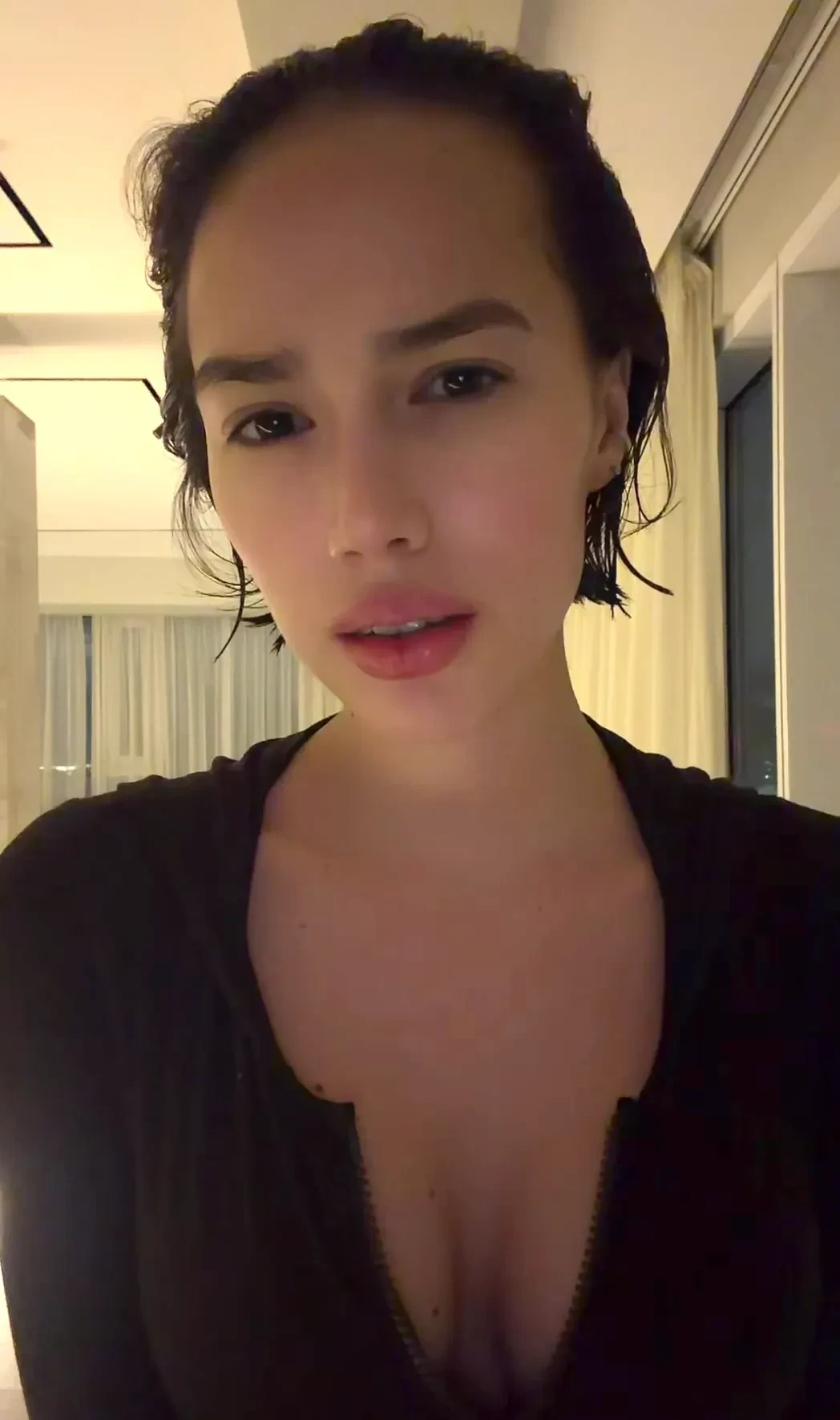 Спортсменка опубликовала видео с новой причёской, где она позирует в кофте с декольте и футболке. Она намекнула, что планировала отращивать волосы, но в какой-то момент передумала. "Зато со мной не скучно", — написала Загитова.